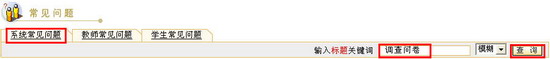 在系统常见问题页面的查询栏输入标题关键字,选择“精确”或“模糊”查询方式,如图所示,点击“确定”按钮,查询结果如图所示。