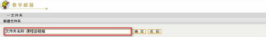 第二步:在“文件夹名称”一栏中,填写新建文件夹的名称。填写完毕,点击“确定”按钮 ,完成新建操作,系统给出“文件夹添加成功”的提示信息。点击“返回”按钮 ,返回教学邮箱首页面。 新建文件夹将出现在教学邮箱首页的文件夹列表中。