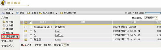 教学邮箱由收件箱、发件箱、草稿箱、垃圾箱等组成。同时,教学邮箱为用户提供了管理文件夹和管理联系人的功能。
