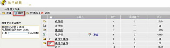 第一步:进入教学邮箱页面,点击页面左侧的“管理文件夹”链接,进入管理文件夹页面。
