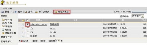 用户可以将已经阅读的邮件重新标记为“未读”。“未读”标记可以起到强调和提示作用。 在教学邮箱的邮件列表中,勾选需要标记为“未读”的邮件所对应的复选框 ,点击页面上方的“标记为未读”按钮,则相应的邮件将被重新标记为未读邮件。