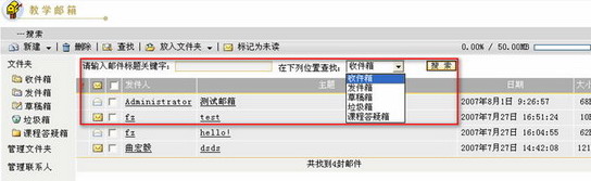 教学邮箱为用户提供了查找邮件的功能。操作步骤如下: 第一步:进入教学邮箱页面,点击页面上方的“查找”功能键,进入搜索页面。