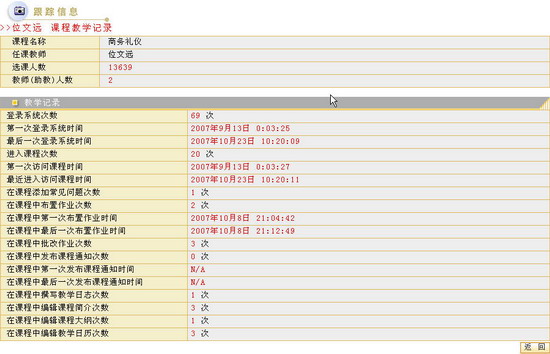 主讲教师不能删除,只能更改。 查看任课教师的“跟踪信息” 单击某一任课教师所在行的“跟踪信息”图标