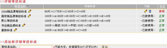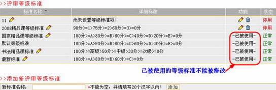 点击等级标准列表中某等级标准名称后的“修改”图标,在出现的文本框中输入等级标准的新名称后,点击按钮即可。