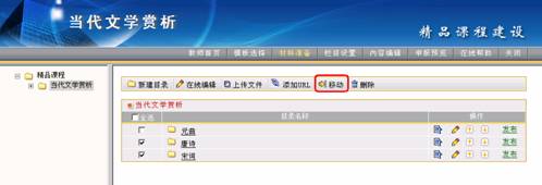 选择图1页面上方功能菜单的“添加URL”选项转入“添加URL”页面后,设置相关选项信息后,点击页面下方的 图 5 添加URL ·添加URL时,用户可以通过点击“URL网址”选项右侧的 移动材料位置用户可以自由地将文件夹或文件进行单个或批量移动。 如下图6所示,勾选材料列表中准备移动位置的文件夹或文件左端的复选框后点击上方功能菜单中的