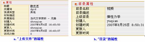 查看材料属性点击材料列表中某一材料在“操作”列的 图 8 “上传文件”和“目录”的属性项比较 编辑材料对于已经建立的目录或文件,用户还可以多次修改编辑其内容或者设置其属性。“编辑”目录或文件的操作与“添加”目录或文件的操作基本相同。 选择材料列表中某一文件夹或文件在“操作”列的