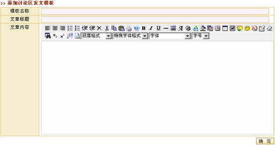 第四步:编辑模版内容,点击“确定”,完成模版设置。发文模版列表中显示所添加的模版:
