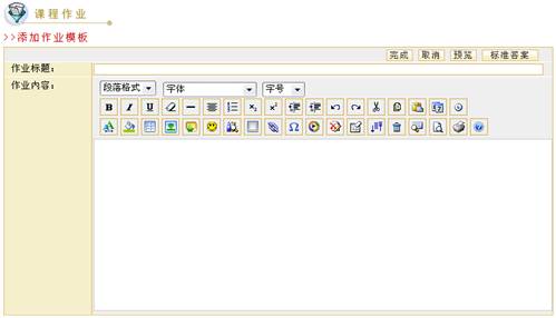 添加的作业模板是可以重复使用给学生布置作业的。 单击作业模板页面的 图 2 添加作业模板 请按照页面提示填写作业标题和作业内容。 教师在添加作业模板时可以设置标准答案,当所布置作业的截止日期过期后,标准答案将在学生端显示。 进入添加作业模板页面,点击右上角 图 3 设置标准答案 填写完毕,点击页面上方的“预览” 图 4 作业模板预览 点击“取消” 修改作业模版