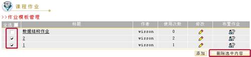 不需要的作业模板可以在作业模板管理页面中删除,单击模板列表前的选择框选择要删除的作业模板,再单击“删除选中内容””按钮 图 6 作业模板删除选择 查看作业模版