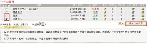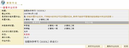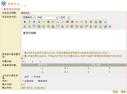 单击作业管理页面下方的“修改”按钮,进入到修改作业页面,如图示: 图 2 作业修改 修改各项内容后单击“完成” 删除作业