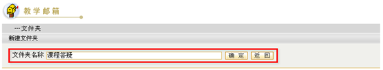 第二步:在“文件夹名称”一栏中,填写新建文件夹的名称。填写完毕,点击“确定”按钮 ,完成新建操作,系统给出“文件夹添加成功”的提示信息。点击“返回”按钮 ,返回教学邮箱首页面。
