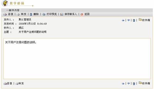 在教学邮箱的邮件列表中,点击要阅读的邮件主题,进入邮件内容页面,如下图所示: