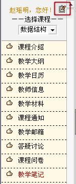 我的笔记本“我的笔记本”是教师个人记录私人教学笔记的工具。教师可以将自己在教学过程中感兴趣的地方或者是需要重点注意的地方等都记录下来放在“我的笔记本”中。可以将其中的内容,共享给本门课程的任课教师和所有的选课学生,提高资源的共享,促进教学。