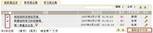 进入“我的笔记本”页面,勾选需要删除的教学笔记所对应的复选框 图 4 删除教学笔记 浏览教学笔记