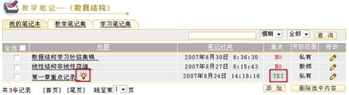 “笔记时间”显示了教师添加或最后修改的时间。点击“笔记时间”链接,可以修改笔记按照时间进行正序和逆序排列。 重点