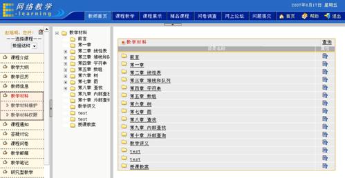 进入课程教学空间,点击左侧栏目“教学材料”,弹出二级栏目“教学材料维护”、“教学材料权限”。这时,主页面显示教学材料浏览页面。如图1所示: