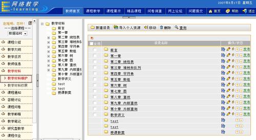 点击二级栏目“教学材料维护”,进入教学材料编辑页面。如下图所示: