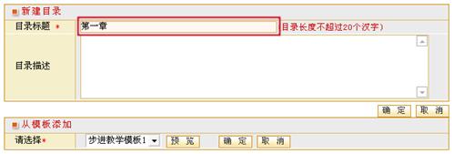 第二步:输入有效标题(要求:目录长度不超过20个汉字)和描述,其中标题不能为空。点击“确定”完成新建目录,并返回上一页;点击“重置”清空原输入内容;点击“取消”取消新建并返回上一页面。