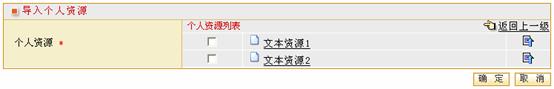 第三步:若想获取课程资源中的某一个文件,则点击相应的课程目录进入。其中,若 “标题”为空,课程资源的名称将作为材料名称。选择课程资源中的相应文件后,点击“确定”完成添加,并返回教学材料列表;点击“取消”,则取消添加,返回上一级页面。