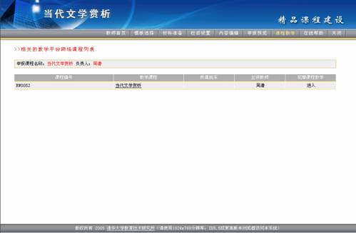 点击列表中的某一课程名称,就可以详细查看该公开课程的各项具体内容。 有关公开课程的具体操作设置参见<课程建设平台用户使用手册>。