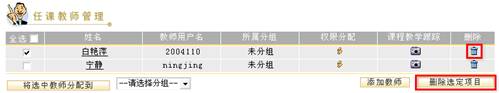 进入任课教师管理页面,勾选需要删除的任课教师所对应的复选框 图 3 删除任课教师