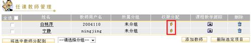 第一步:进入教师任课管理页面,从“请选择分组”下拉菜单中选中要将教师分配到其中的小组。 第二步:选中教师,点击“将选中教师分配到”,此时有分配确认对话框弹出,确认,即可将选中的教师分配到第一步中已选中的小组中。 第三步:分配成功后,任课教师管理页面中“所属分组”一列中会显示第二步选中教师所在的分组。