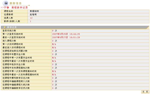 进入任课教师管理页面,点击“课程教学跟踪”按钮 图 6 课程教学跟踪 图 7 任课教师课程教学记录